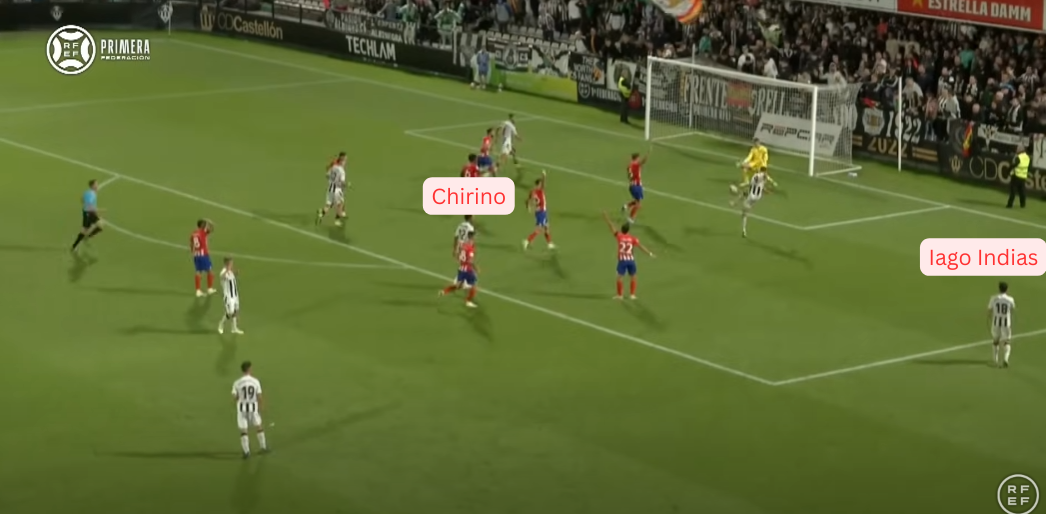 La base del repertorio de Iago Indias. Aunque el gallego tenía experiencia en el mediocentro defensivo antes de llegar al Castellón, jugar en defensa es su posición por defecto, aunque lo que significa ser central en el sistema de Schreuder es totalmente diferente al de casi cualquier otro técnico, incluido Albert Rudé.
