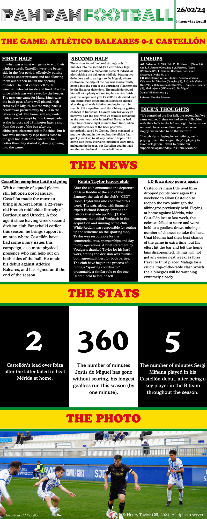 Castellón get back to winning ways in Mallorca, Albert Lottin joins the club, and Ibiza drop points.