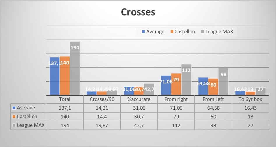 According to analysis by @KiekensDrei on Twitter, Eldense are particularly good from crosses, leading the league in accuracy at 42%, compared to Castellón at 30.7%. Despite not having a huge physical presence up front (like Castellón), Eldense are seemingly able to convert at a high rate, through Juanto Ortuño and Mario Soberón in particular.